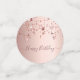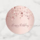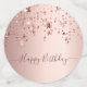 Girly and feminine confetti for your 80th birthday party table setting. A rose gold faux metallic, foil looking background decorated with dripping stars in rose gold. Templates for a date and name/age 80. Dark rose gold coloured letters. Some confetti chips with name and date, others with the text: Happy Birthday written with a trendy handlettered script with swashes.