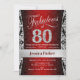 80th Birthday Party - Silver Red Black Invitation