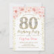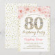 80th Birthday Party - White Gold Pink Invitation