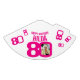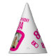 Bold add your own photo and name white with bright pink text party hat. Ideal for a special ladies 80th birthday party celebration. Other matching birthday items and colour options are available. Original graphic art and design by www.mylittleeden.com