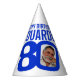 Add your own photo and name party hat. Ideal for a special 80th birthday party celebration. Simple blue and white design. Other matching birthday items are available. Original graphic art and design by www.mylittleeden.com