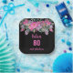 80th birthday pink black watercolor floral Paper Plates. Personalise with name, age and text.
