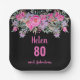 80th birthday pink black watercolor floral paper plate