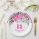 Elegant design for a 80th birthday party with a pink "80" and scripted "fabulous" embellished by a feminine floral design on a white background. Customise age, text and background colour.