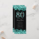 80th Birthday Program Turquoise Menu+Thank You Invitation
