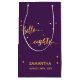 Elegant and modern for a 80th birthday party. Purple backdrop and faux gold text written with a trendy hand-lettered style script: hello eighty. With golden dots as decor. Templates for name and date, golden letters.