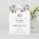 Soft watercolor purple lilacs create a pretty springtime 80th birthday invitation. The typography adds a vintage, retro vibe. All of the text is editable so you can set just the right tone. You can easily change fonts and colour as well. This 80th birthday invitation is available in both traditional cardstock and a downloadable version. It is part of the Purple Spring Lilac Flower collection. It lets you choose a theme and then easily create a unique invitation suite, welcome signs and party decorations. Party planning becomes fun and enjoyable.