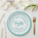 80th Birthday Random Number Pattern Teal/White Paper Plate