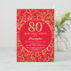 80th Birthday Red and Gold Floral Pattern Invitation