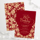 Red gold elegant 80th birthday party invitation. Classy design featuring roses, faux gold foil and typography script font. Trendy invite card perfect for a stylish female bday celebration. Personalise with your own details. Can be customised to any age. Printed Zazzle invitations or instant download digital printable template.