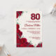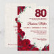 80th Birthday - Red Peonies Linen 80 Years Invitation