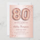 80th birthday party invitation. Elegant design in faux glitter rose gold. Invite card features rose gold number 80 balloons and script font. Perfect for a stylish bday celebration. Message me if you need custom age.