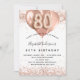 80th birthday rose gold balloons invitation