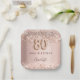 80th birthday rose gold blush pink name paper plate
