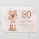 This beautiful 80th birthday party invitation featuring a 2-layer rose gold glitter cake with rose gold balloons, the number 80 in rose gold on blush would be perfect for celebrating your wife, sister, friend, mum, aunt, grandmother. It is traditional and classic while being fresh, modern and contemporary. The back is a lovely coordinating rose gold foil.