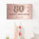 Elegant, classic, glamourous and girly for a 80th birthday party. Rose gold and blush pink, gradient background. Decorated with rose gold and pink stars. Personalise and add a name. With the text: Happy Birthday. The name is written with a modern dark rose coloured hand lettered style script. Number 80 is written with a balloon style font.