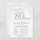 80th Birthday Invitation with Silver Glitter Diamond Background. Silver Confetti. Adult Birthday. Male Men or Women Birthday. For further customisation, please click the "Customise it" button and use our design tool to modify this template.