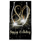 Gold sparkler on black background with gold confetti for 80th birthday.