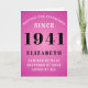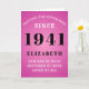 80th birthday born in 1941 pink greeting card. Easily customise the text to the front and the interior of this birthday card using the template provided. Part of the setting standards range of greeting cards.