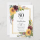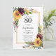 This sunflowers 80th Birthday invitation is perfect for your party. It's lovely watercolor sunflowers and burgundy roses and wispy wildflowers on a double gold frame blend beautifully with the clean type make it stunning, modern yet classic! It's coordinating burgundy watercolor wash back adds an extra touch. They're perfect for celebrating your wife, mum, aunt, friend, grandmother. It's super easy to make these invitations by selecting Personalise this template and typing in your information. In a flash you can see how gorgeous your invitations will be!