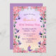 80th birthday tea party pink violet florals cute invitation