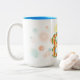 Funky, vintage-modern, carnival, coloured happy birthday mug with hand drawn numeric candles celebrating 80 years.