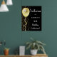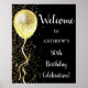 Customisable 80th birthday welcome poster, featuring a gold glitter balloon, with a shower of gold glitter on a black background.