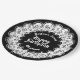 This is a black and white random number pattern with fancy scallops and custom text. The black milestone number 80 is scattered over a white background. The design is a very cool fun way to celebrate the past 80 years at your over-the-hill, 80th birthday party.