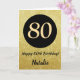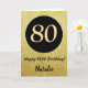 80th Happy Birthday Black and Gold Glitter Card with personalised name. For further customisation, please click the "Customise it" button and use our design tool to modify this template.