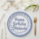 80th Party Random Number Pattern Blue/White Paper Plate