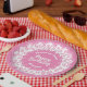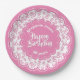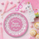 80th Pink/White Random Number Pattern Paper Plate