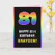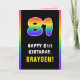 81st Birthday: Colourful Rainbow # 81, Custom Name Card