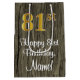 81st Birthday: Elegant Faux Gold Look #, Faux Wood Medium Gift Bag