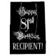 This formal and lavish birthday themed gift bag design features the message “Happy 81st Birthday,” in luxurious script style text, on a black coloured background. It also has a personalised recipient name. An opulent gift bag like this might be used when wrapping presents being given to somebody in celebration of their eighty first birthday. [~Z0000557]