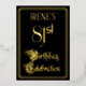 The front of this opulent, elegant, foil eighty-first birthday celebration/party invitation design features the message “81st Birthday Celebration” in luxurious script-style text. It also has a personalised name. The background of the front is coloured black by default (although it can be customised to a different colour). The back features personalised details about the event, such as the date, time, location, and any other information that may be relevant. Luxurious, fancy, personalised invitations like these might be used to invite guests to a birthday celebration being held in celebration of somebody’s 81st birthday. [~Z0000589]