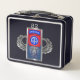 This is a standard metal lunchbox that appears to work just fine. We designed this box ourselves with an uploaded photo and custom text on the front and back. It looks absolutely beautiful except the front of the lunchbox is not centered like it shows in the photo. The print borders don't align with the inset flat part of the box where the preview photo online showed it perfectly centered in there. The back looks nice and centered though.