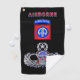 Display your pride for our Army's only Airborne Division! This is a specially designed gift for anyone looking for that one of a kind special gift for any occasion such as retirement, change of command, PCS, ETS or simply because you want this cool design. This uniquely designed Custom Golf Towel makes a wonderful gift for your Favorite Paratrooper! The 82nd Airborne Division is a critical part of our Rapid Deployment Forces and is indeed the “Tip of the Spear” for our rapid response forces and can be anywhere in the world in 18 hours. The 82nd “All American” Division has a time honored and well respected history of fighting and winning for our Nation when called upon!