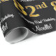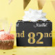 This sophisticated, stylish, and elegant birthday themed wrapping paper design features a large ordinal number “82nd” having an imitation/faux gold-like look, in addition to the birthday greeting message “Happy 82nd Birthday,” and an editable recipient name in a script-style font. The background is coloured black. Stylish birthday themed wrapping paper like this might be a fun way to wrap a gift or present being given to celebrate somebody’s eighty second birthday. [~Z0000515]