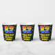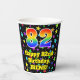 This colourful and joyful birthday themed paper cup design features a large number “82” with a rainbow spectrum gradient inspired pattern, along with the message “Happy 82nd Birthday,”, and a personalised name. The background features a vibrant and colourful pattern having many star shapes with different sizes and colours. Colourful, vibrant paper cups like this might be fun to use at a birthday celebration/party being held in celebration of somebody’s 82nd birthday. [~Z0000540]
