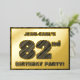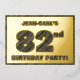 The front of this bold eighty-second birthday celebration foil invitation card features a personalised name, a large number “82nd”, the message “BIRTHDAY PARTY!”, and a border, all featuring a rustic, yet elegant, faux wood grain look inspired pattern. The back features personalised details about the event, such as the date, time, place, and any other information that may be important. Customised invitations like these might be used to invite guests to a birthday gathering/party being held in celebration of somebody’s 82nd birthday. [~Z0000595]