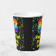 This cheerful and exciting music themed birthday paper cup design features a large number “83” with a rainbow spectrum gradient inspired pattern, along with the message “Happy 83rd Birthday,”, and an editable name. The background features a vibrant and colourful pattern of various music notes and symbols having a variety of sizes and colours. Vibrant, colourful paper cups like this might be fun to use at a birthday celebration being held to celebrate somebody’s eighty-third birthday. [~Z0000541]