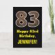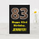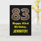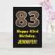 83rd Birthday: Name, Faux Wood Grain Pattern "83" Card