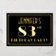 The front of this 1920s/1930s style inspired eighty-third birthday celebration foil invitation features a personalised name, a large art deco look inspired number “83rd”, the message “BIRTHDAY PARTY”, and a border pattern consisting of lines. The background of the front is coloured black by default, but it can be customised to a different colour if desired. The back features personalised details about the event, such as the date, time, venue, and any other information that may be important. Luxurious, elegant, personalised invitations like these might be used to invite guests to a birthday gathering/party being held to celebrate somebody’s 83rd birthday. [~Z0000591]