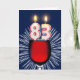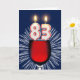 A birthday glass of wine with candles. The candles are made up of the number 83, for an 83rd birthday. Fireworks are exploding in the background. A birthday card suitable for anybody, male or female.