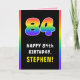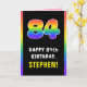 84th Birthday: Colourful Rainbow # 84, Custom Name Card