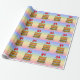 This joyful and colourful birthday-themed wrapping paper design features a cartoon-style depiction of a three-tier birthday cake having number-shaped candles on top showing the age “84“, along with the message “HAPPY 84TH BIRTHDAY,”, and a customisable recipient name. The background features a multi-colour pastel rainbow spectrum inspired gradient pattern. Wrapping paper like this might be used when giving a gift or present in honour of somebody’s eighty fourth birthday. [~Z0000622]