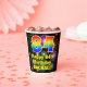 This fun and colourful birthday-themed paper cup design features a large number “84” having a rainbow spectrum gradient inspired pattern. It also features the message “Happy 84th Birthday,”, and a personalised name. The background features a vibrant and colourful bursting celebratory fireworks inspired pattern. Colourful, vibrant paper cups like this might be fun to have at a birthday party/celebration being held to honour somebody’s 84th birthday. [~Z0000539]