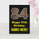 84th Birthday: Name, Faux Wood Grain Pattern "84" Card