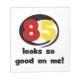 If you or someone you know is turning 85 years old, you'll love our 85 Looks So Good On Me birthday T-shirts, buttons, cards, stickers, mugs, magnets, and other 85th birthday apparel and gifts with a black, red, and yellow text design.
