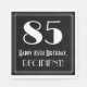 This vintage style and Roaring '20s inspired birthday themed paper napkin design features a large art deco style inspired number "85", the message "Happy 85th Birthday,", a custom name, and a border pattern consisting of thin lines. Fun, customisable birthday themed paper napkins like this might be used at somebody’s 85th birthday party. [~Z0000461]